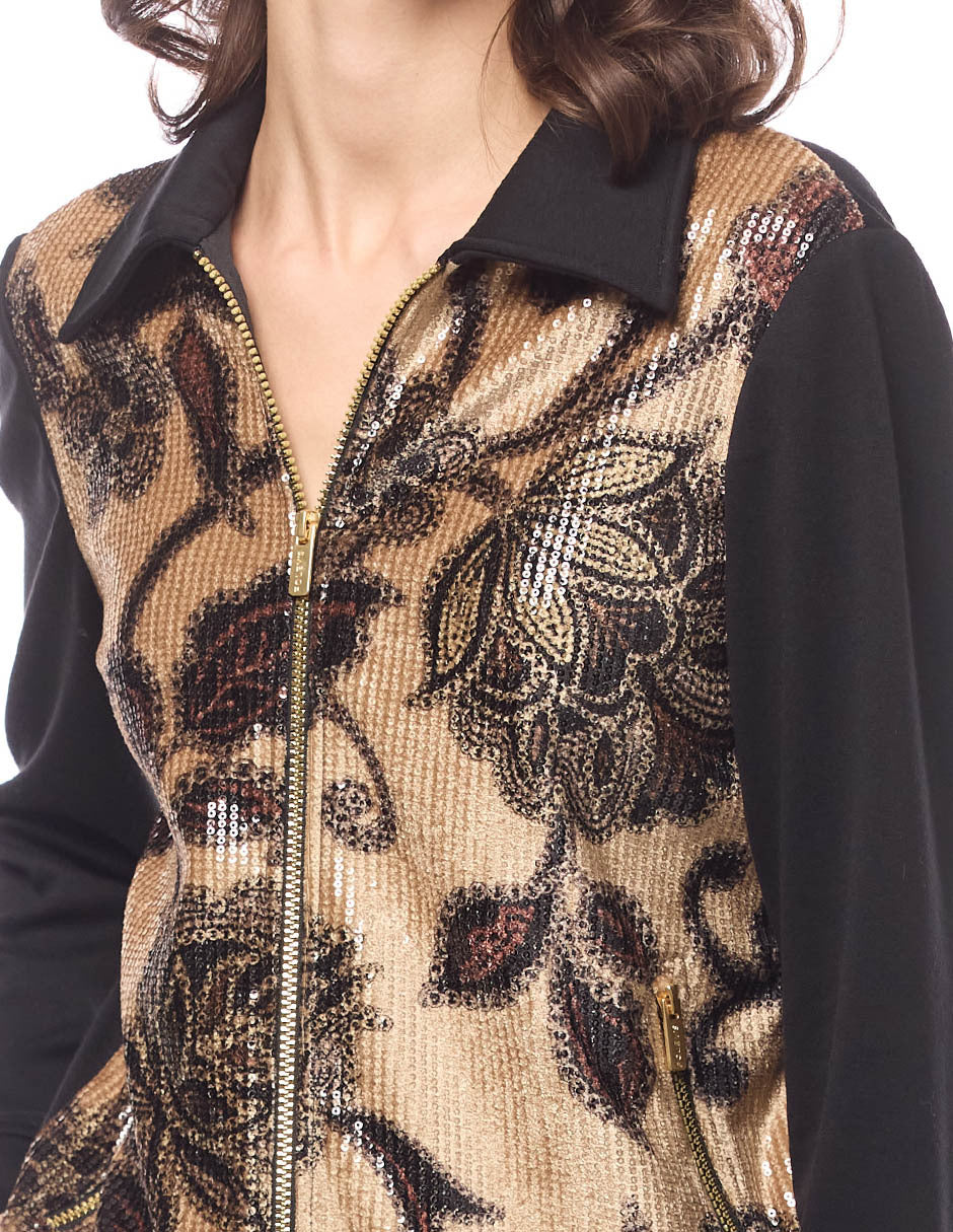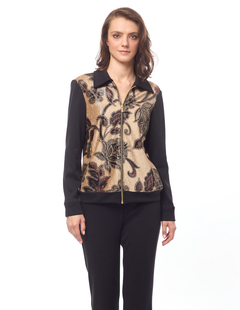 Chamarra Negra Estampada con Lentejuelas Comfort
