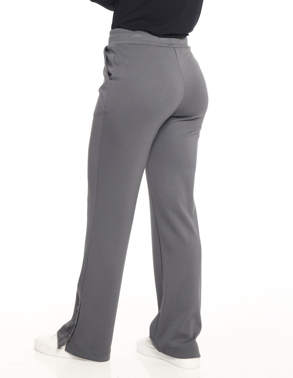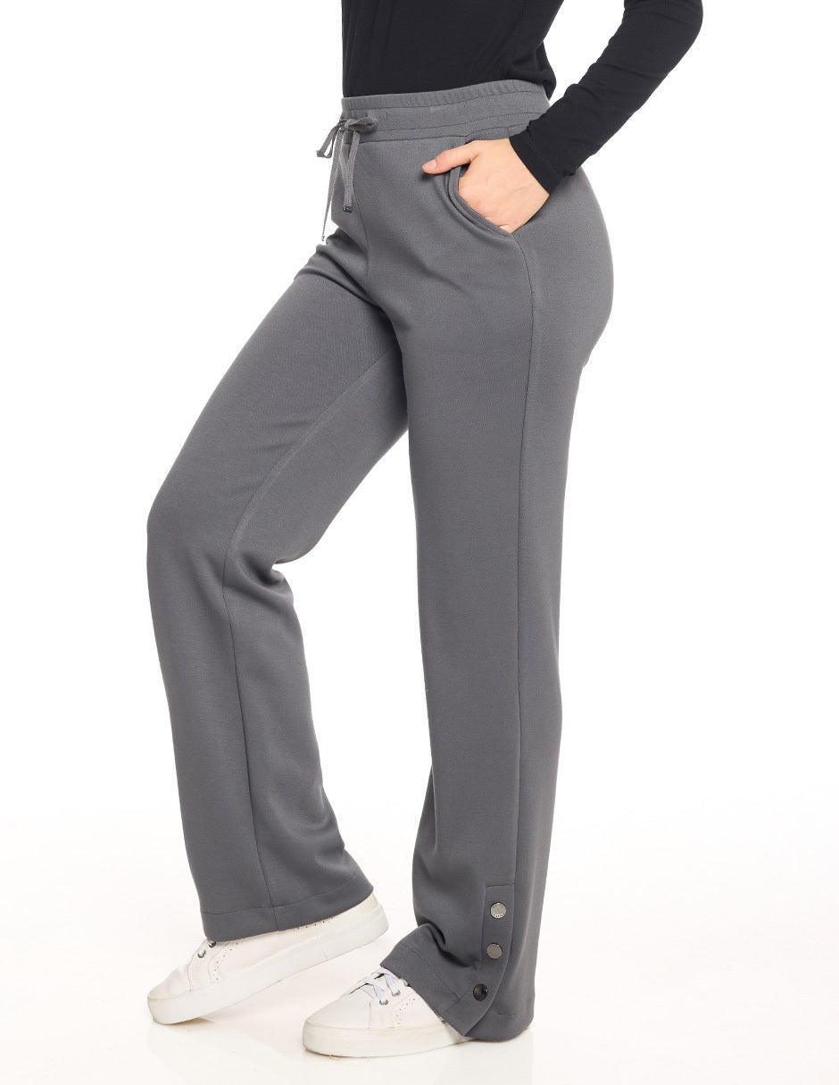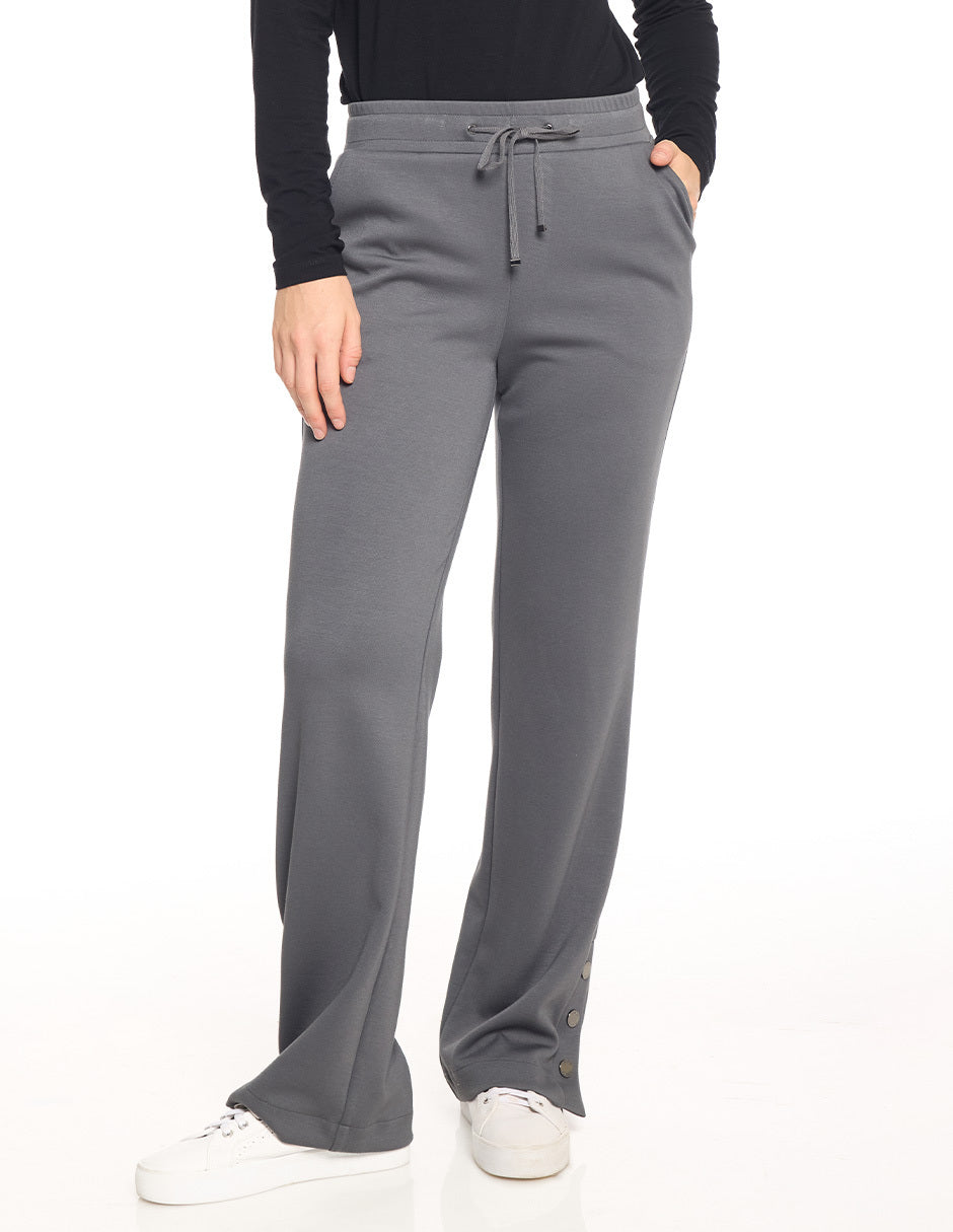 Pants liso, elástico en cintura con jareta funcional, botones en ruedo
