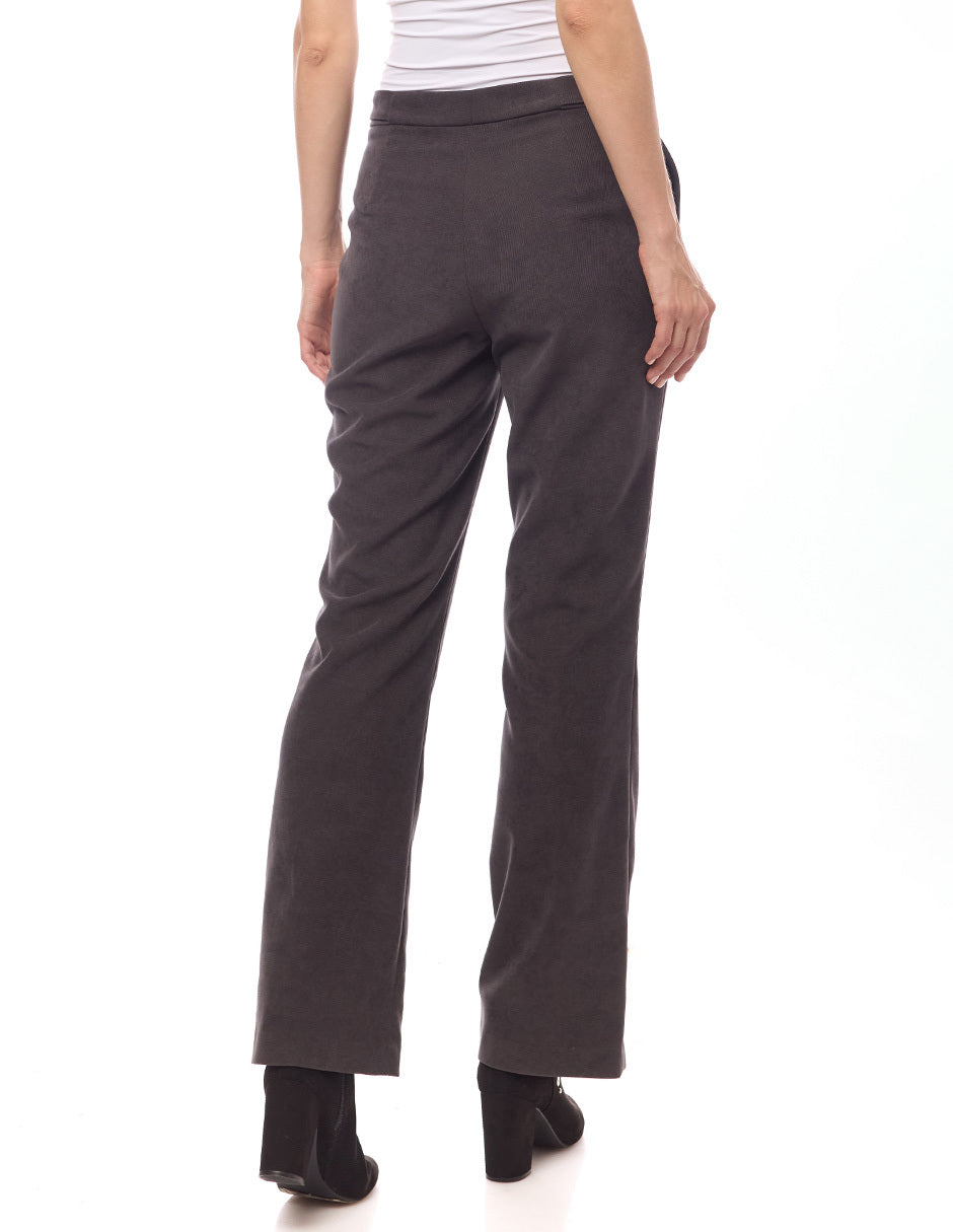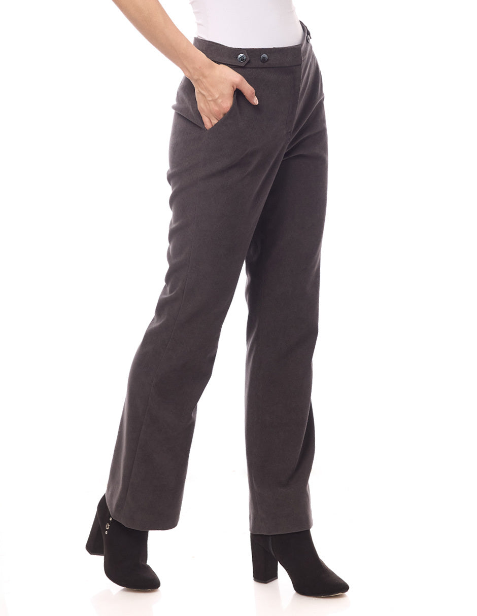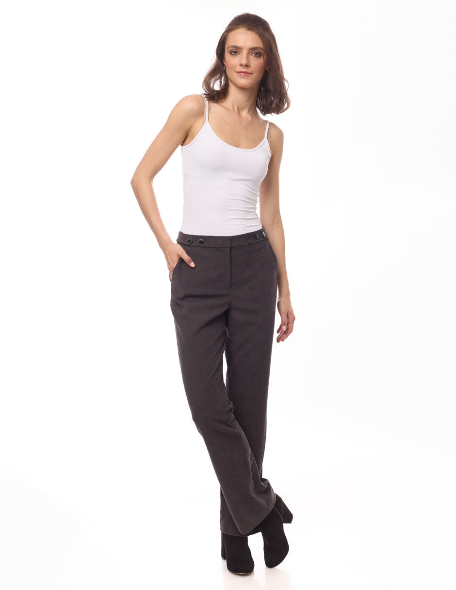 Pantalón liso color gris, cierre al frente, charretera en cintura con botones, y bolsas diagonales en costados