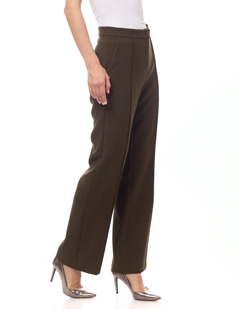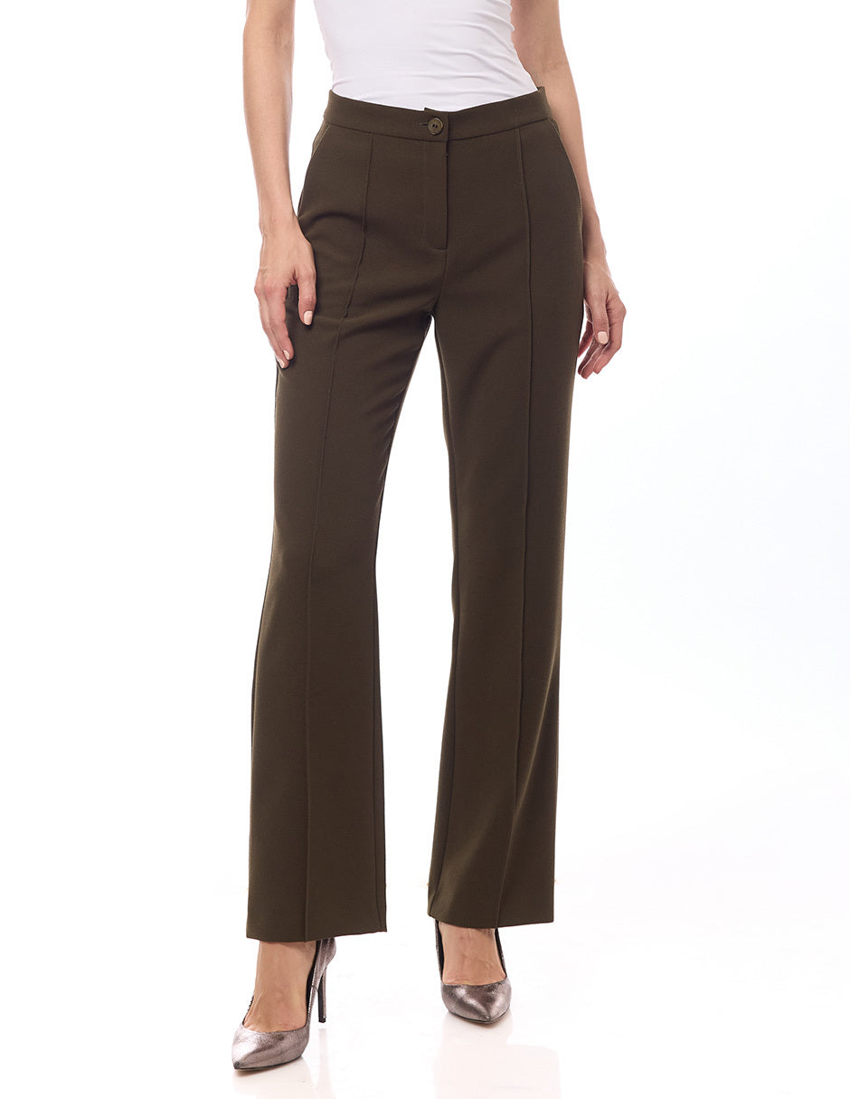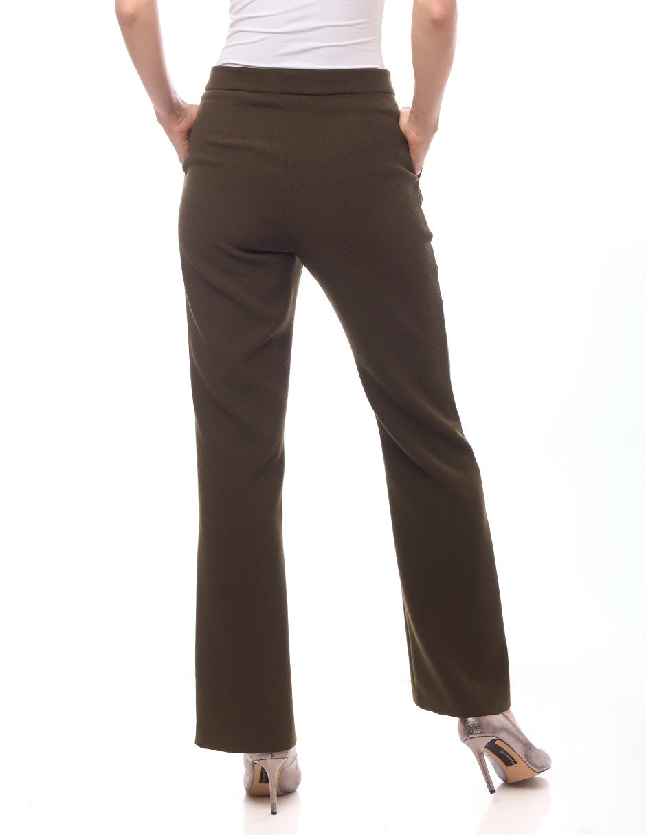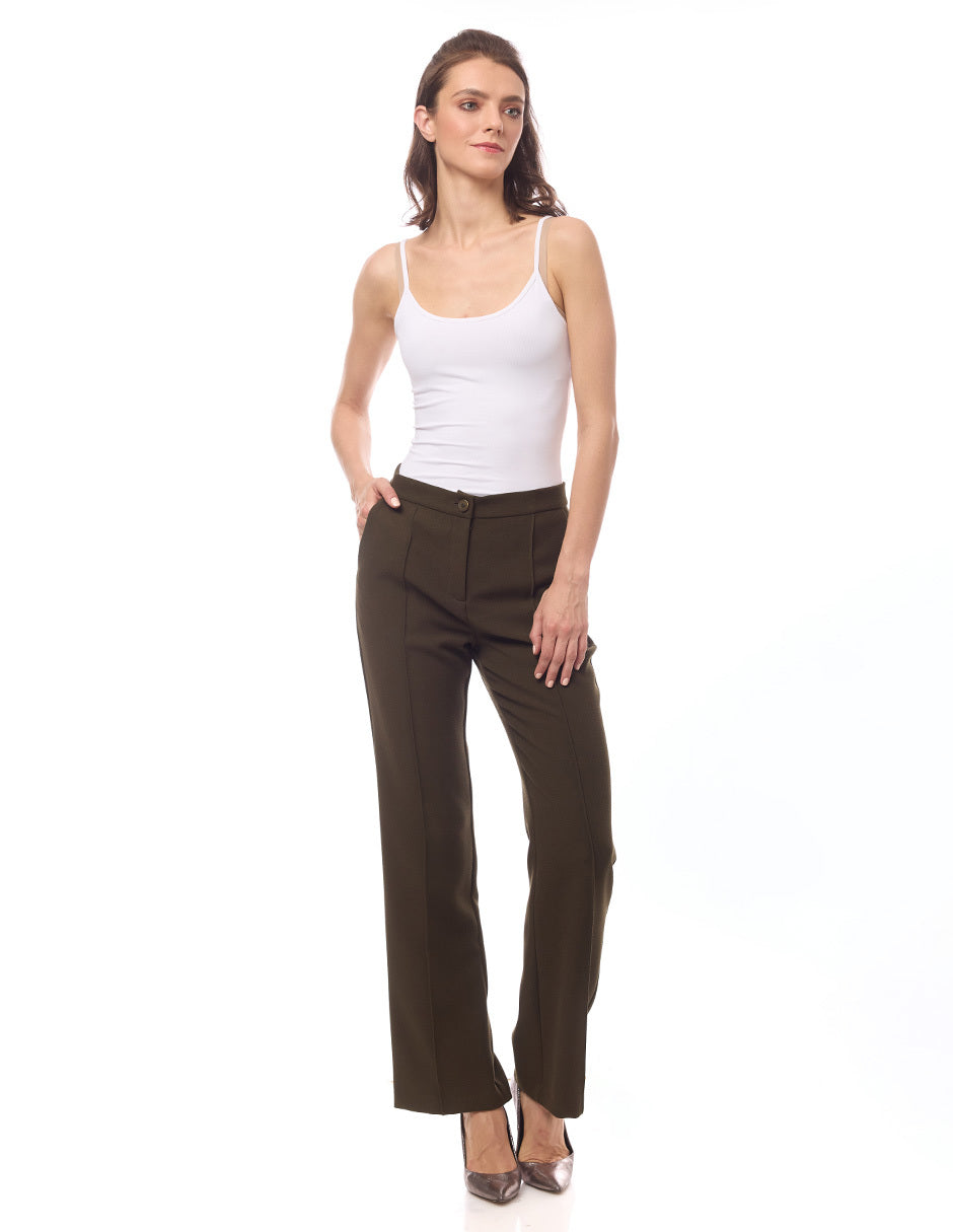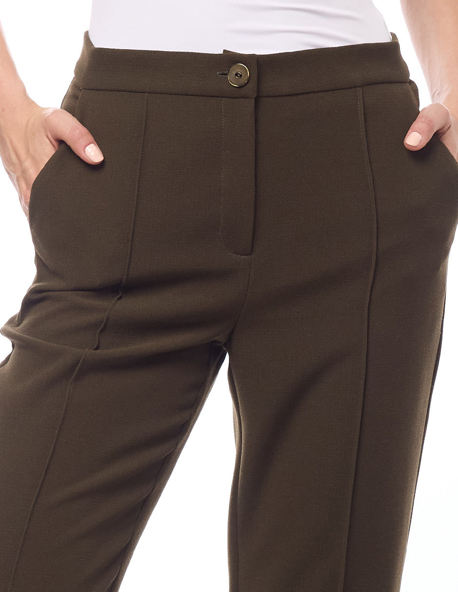 Pantalón liso color verde, cierre y alforza al frente, con bolsas diagonales en costados