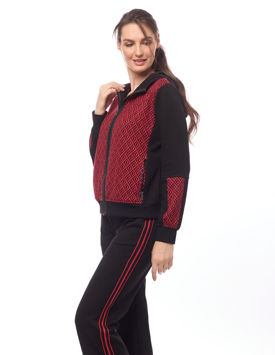 Chamarra con Rombos y Gorro Negra Comfort