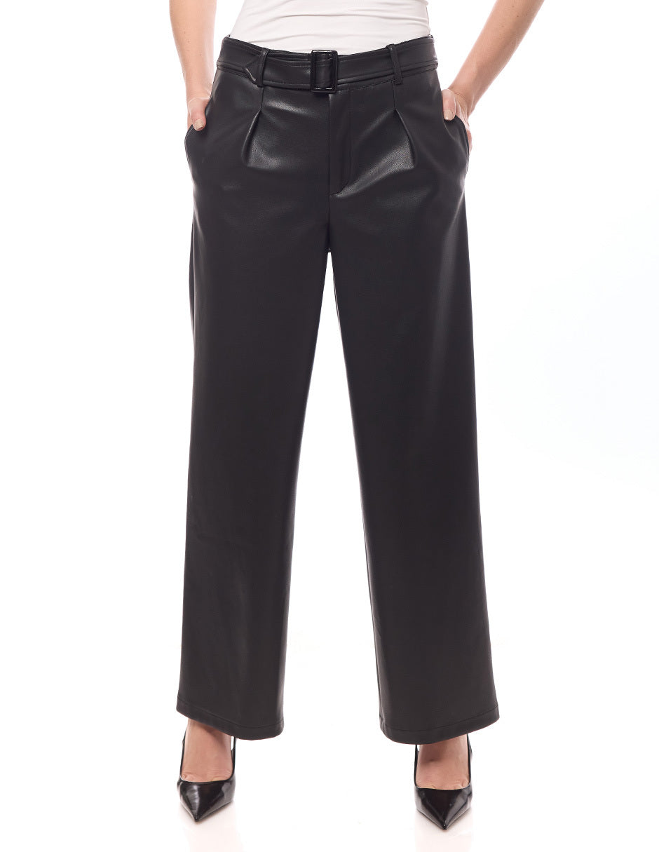 Pantalón tacto piel con cinturón