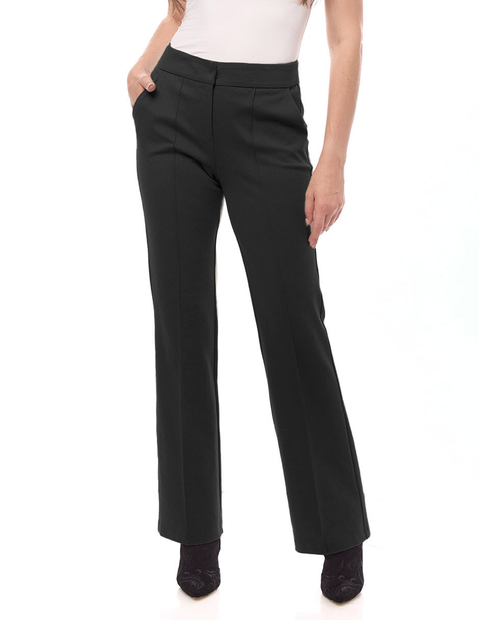 Pantalón liso, cierre y alforza al frente, bolsas sesgadas en costados