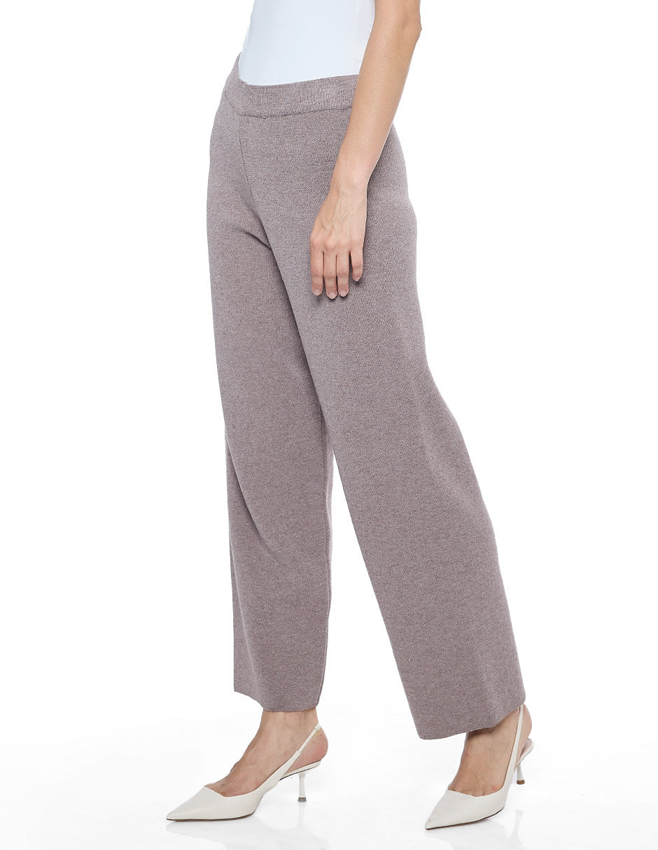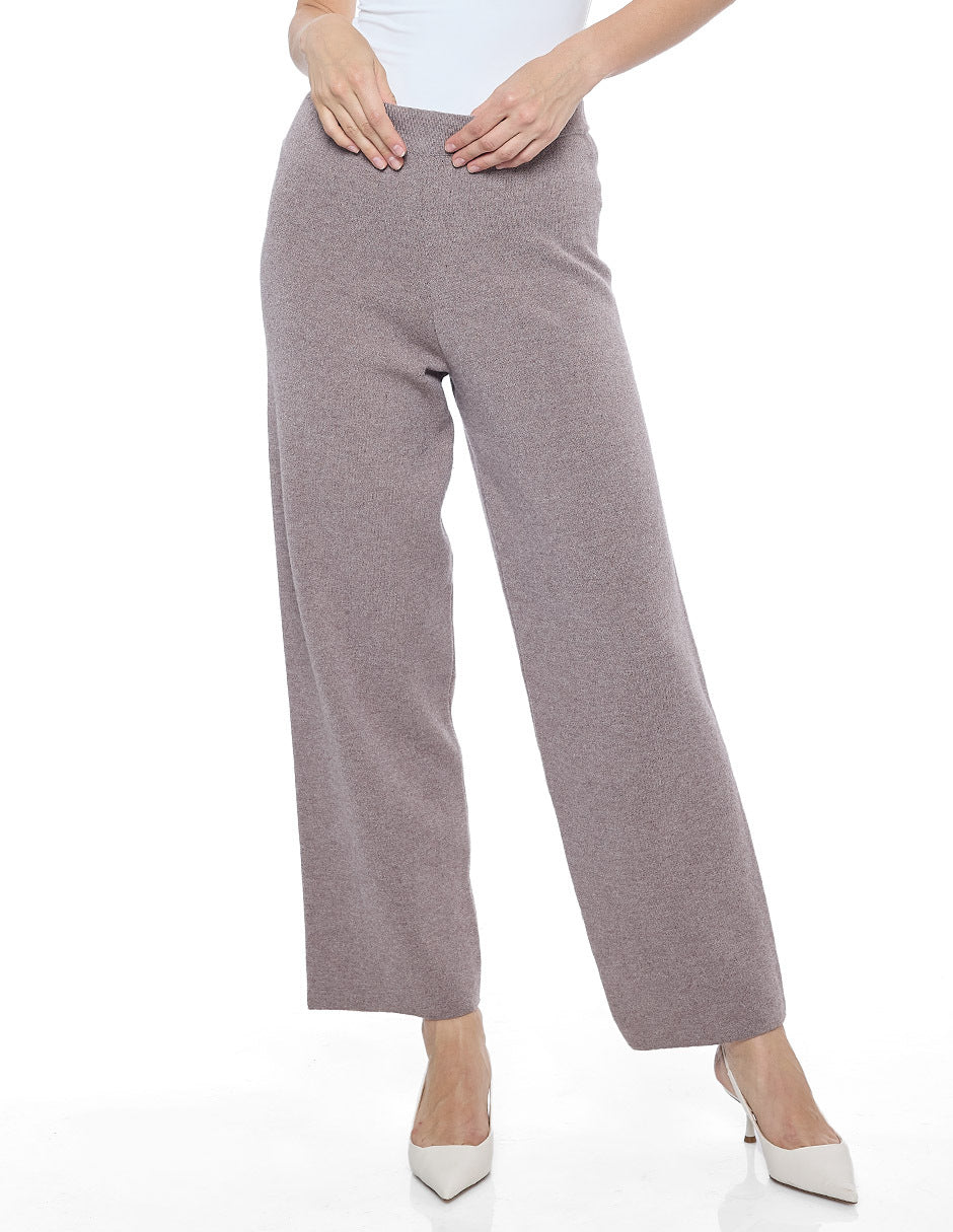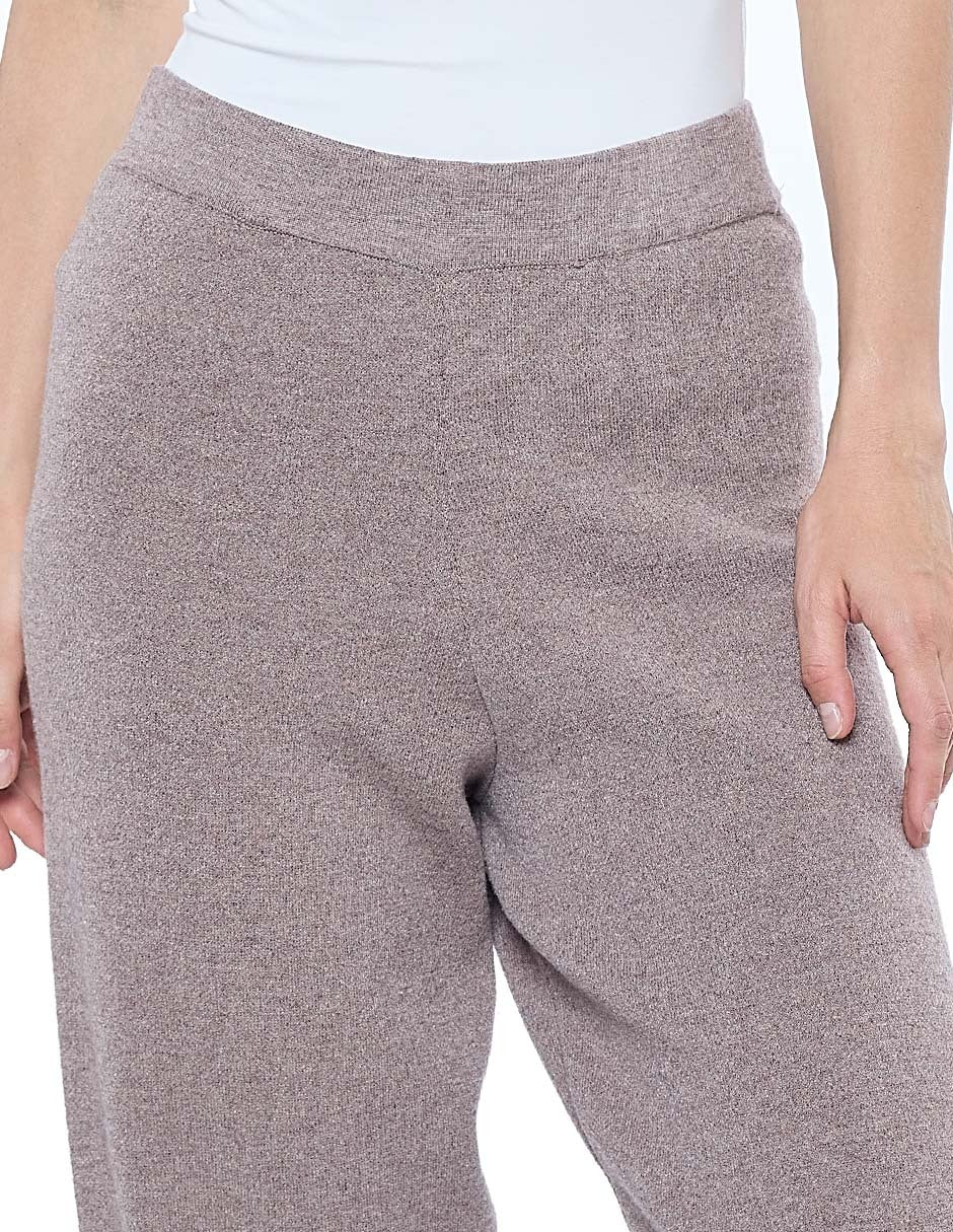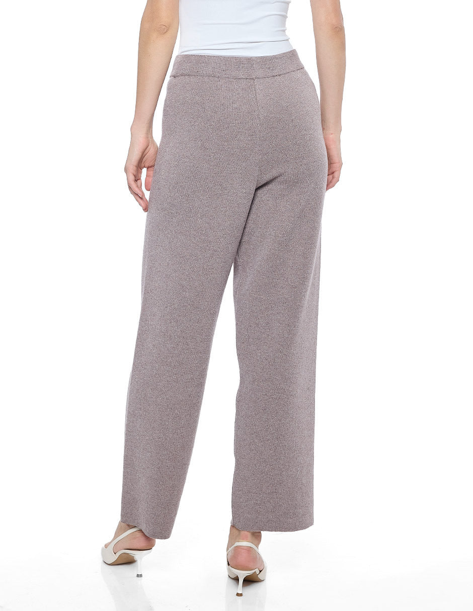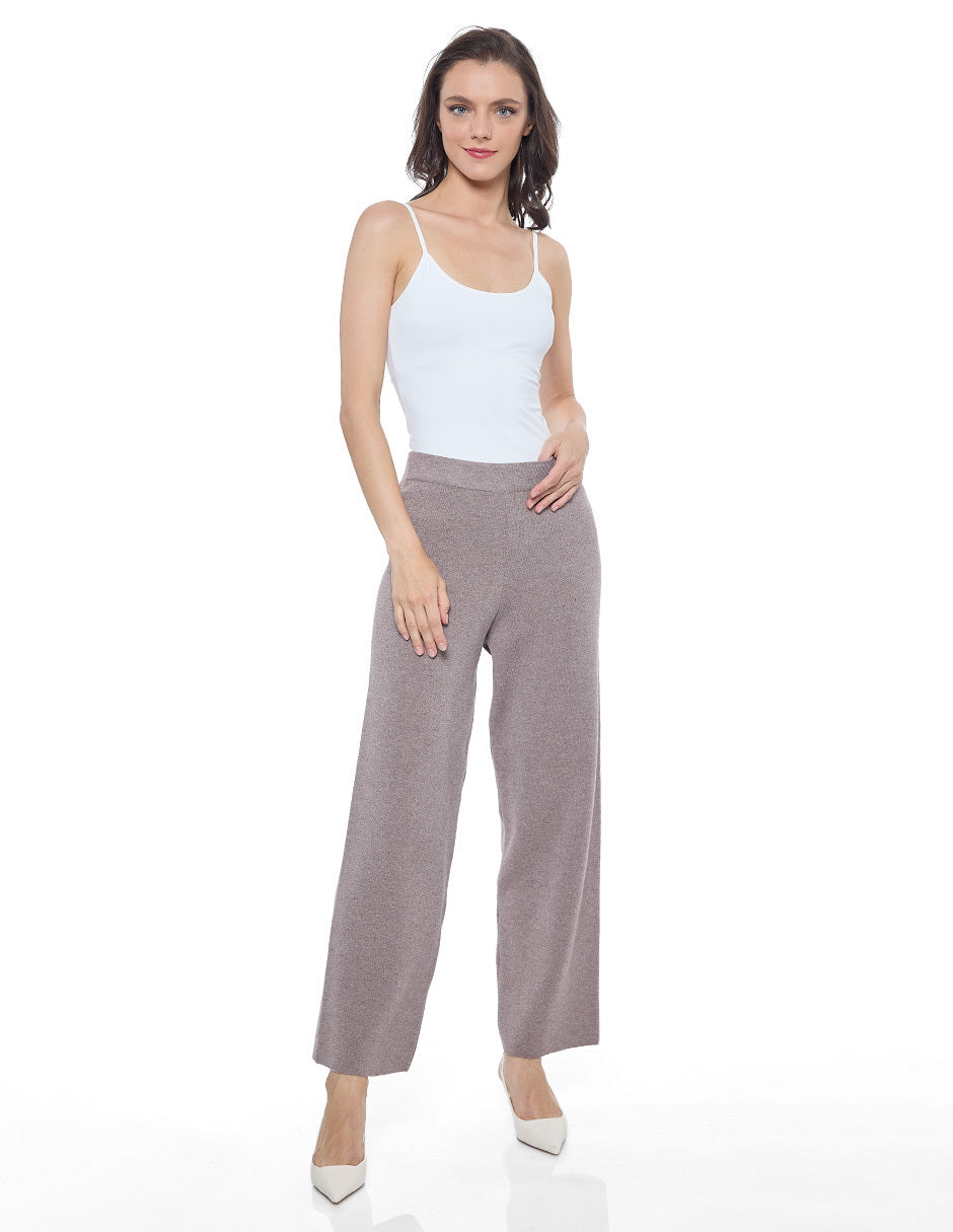 Pantalón punto color beige con elástico en cintura y pierna recta