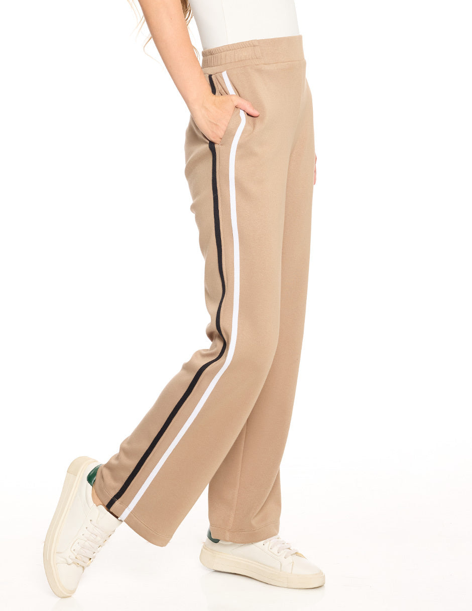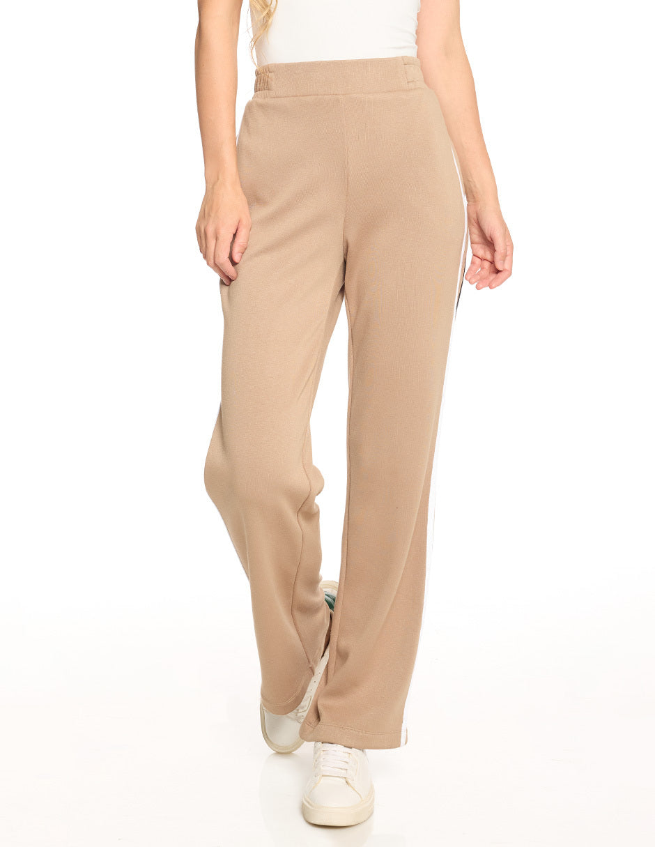 Pants liso, elástico en cintura, bolsas en costados, cinta en combinación en costados