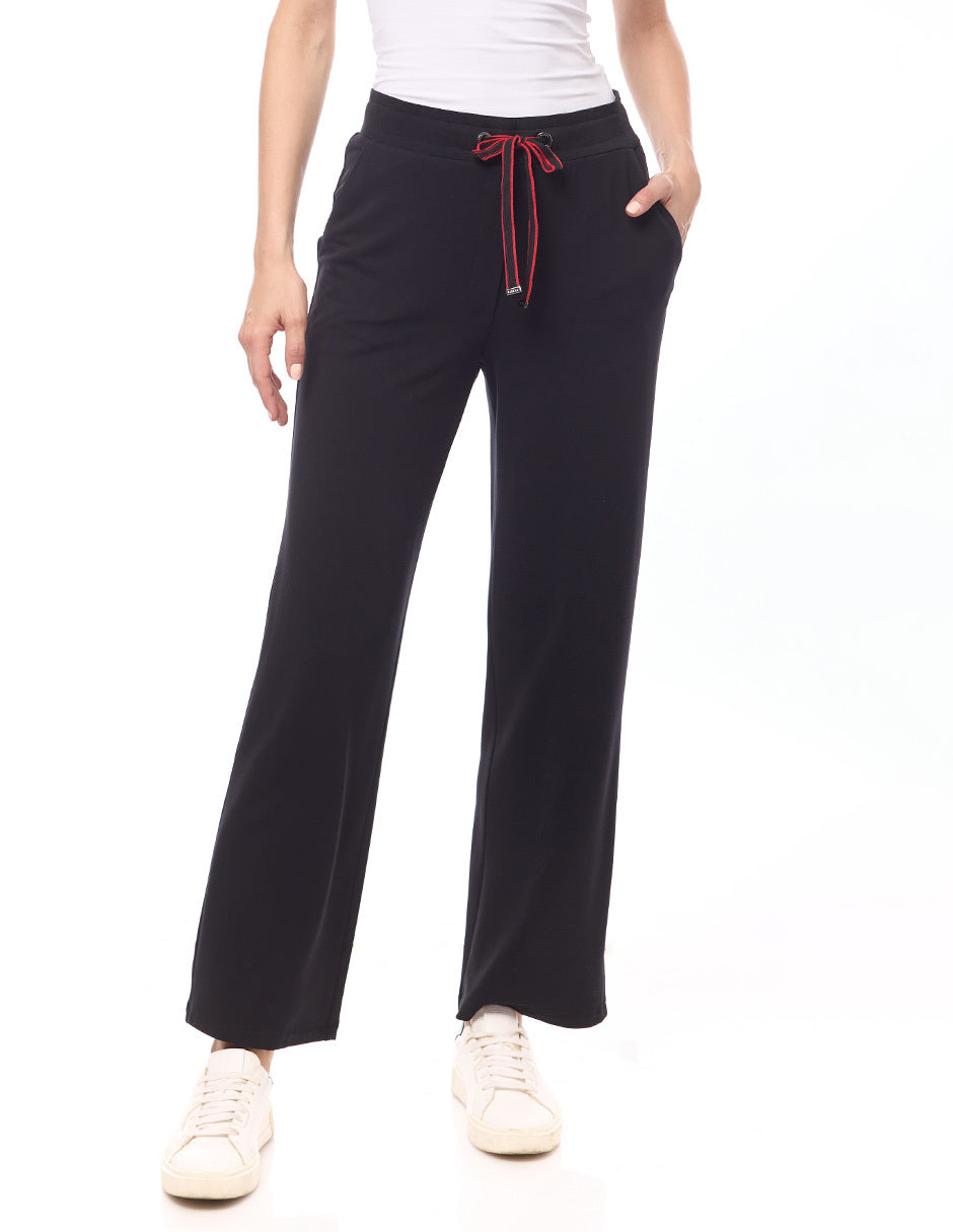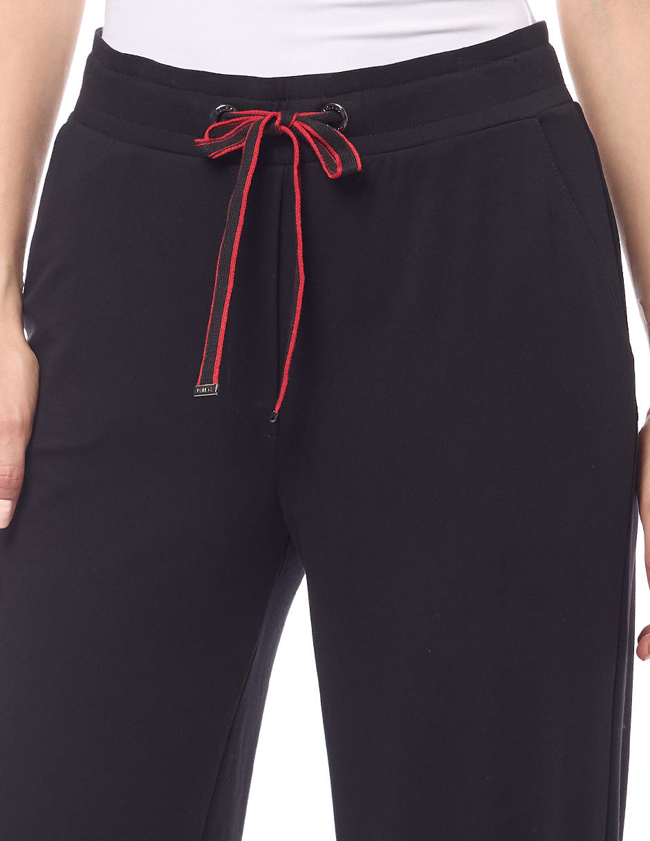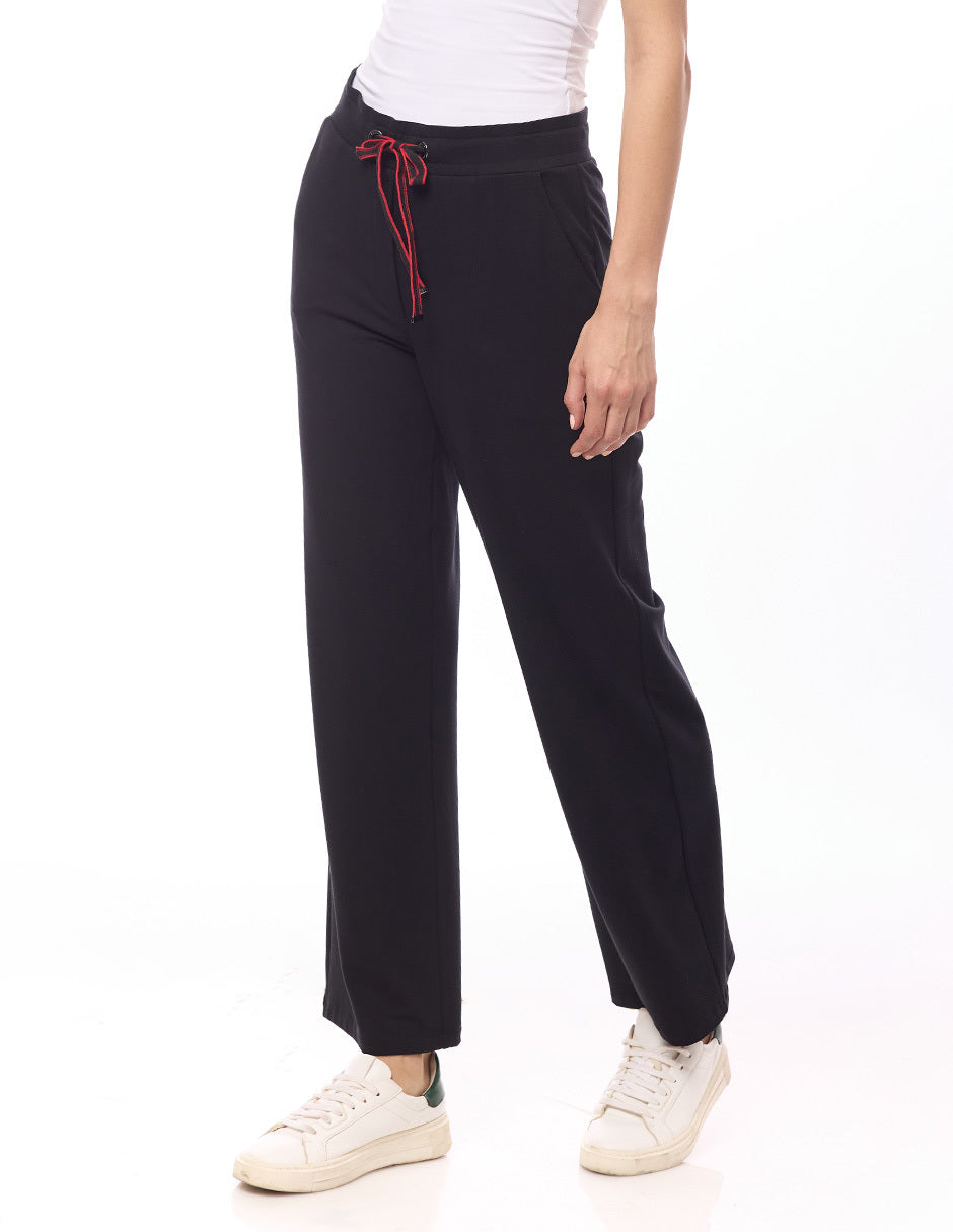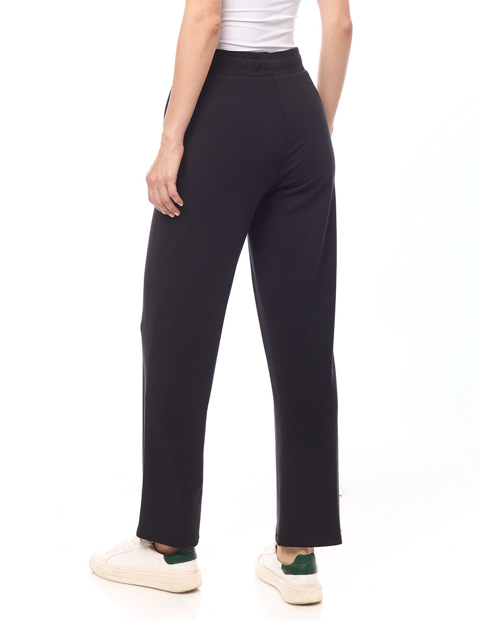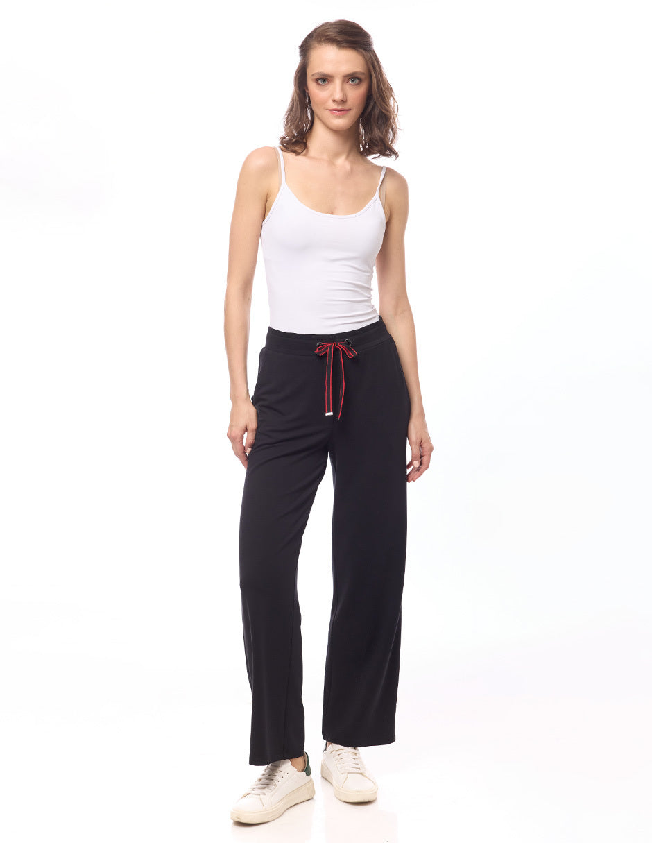 Pants color negro liso, con elástico y jareta funcional, bolsas en costados