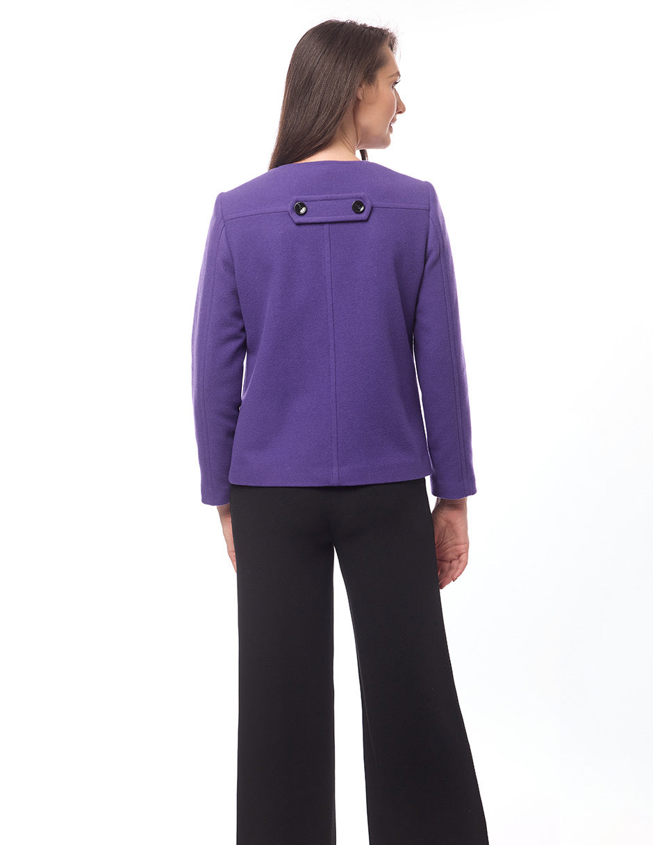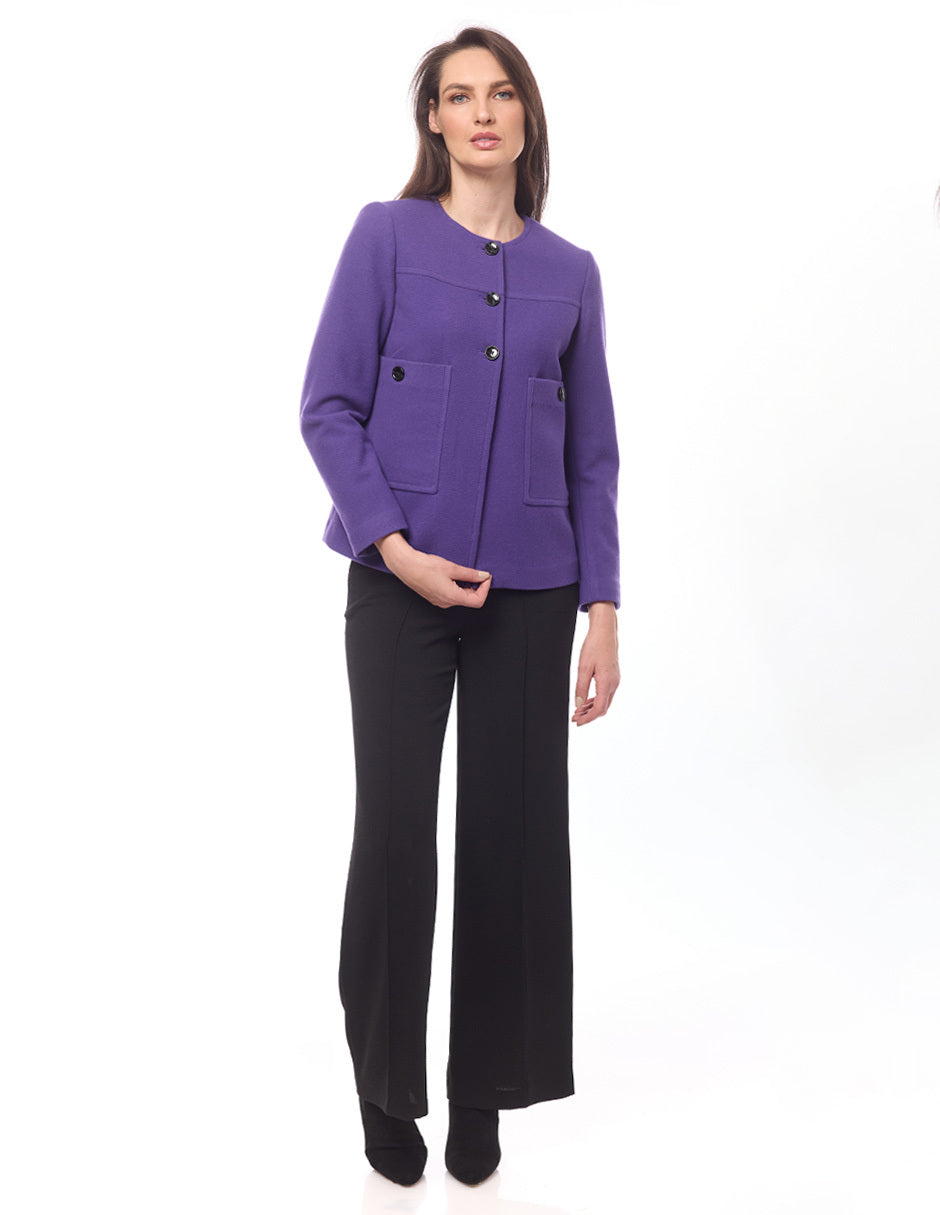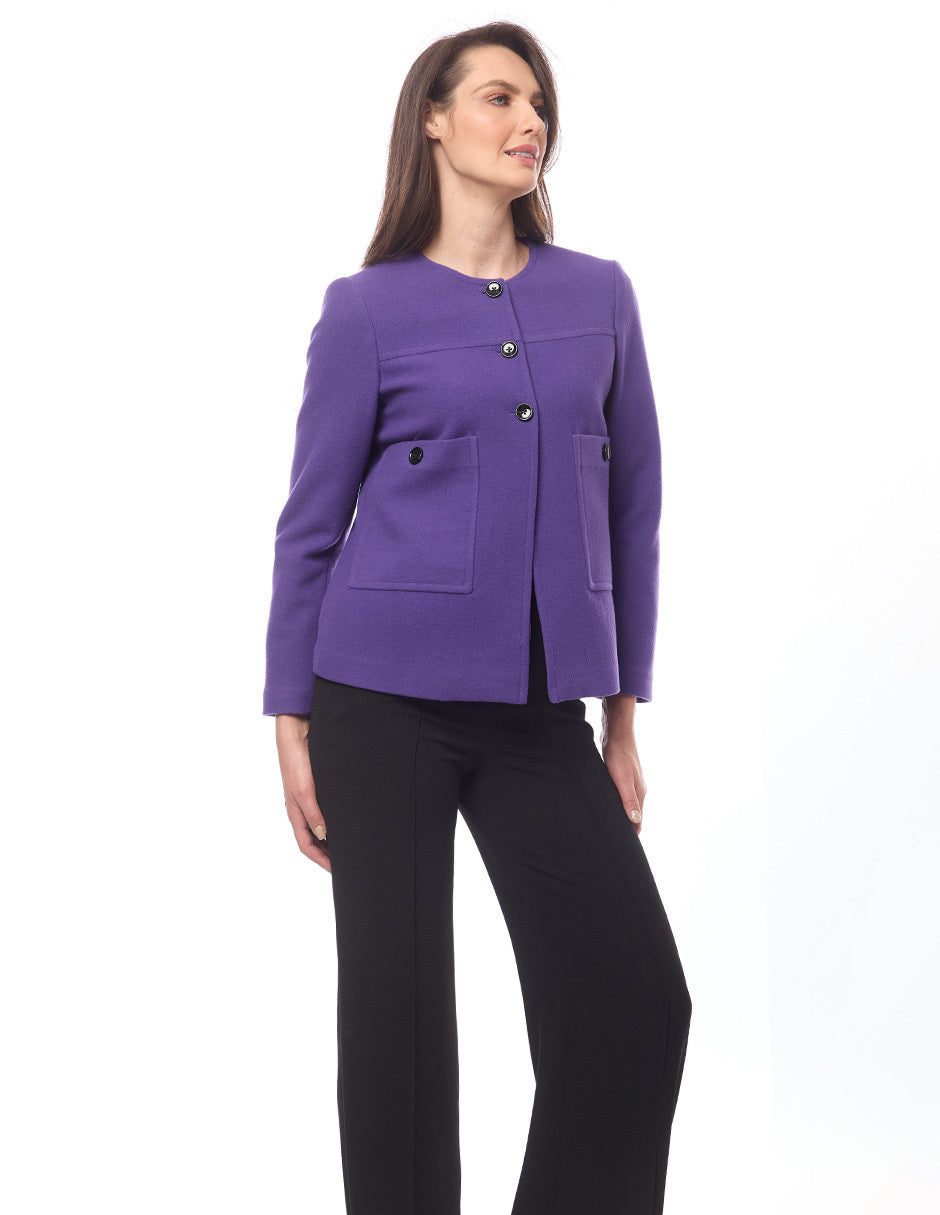 Blazer liso, escote redondo, con batas, bolsas de parche, manga larga