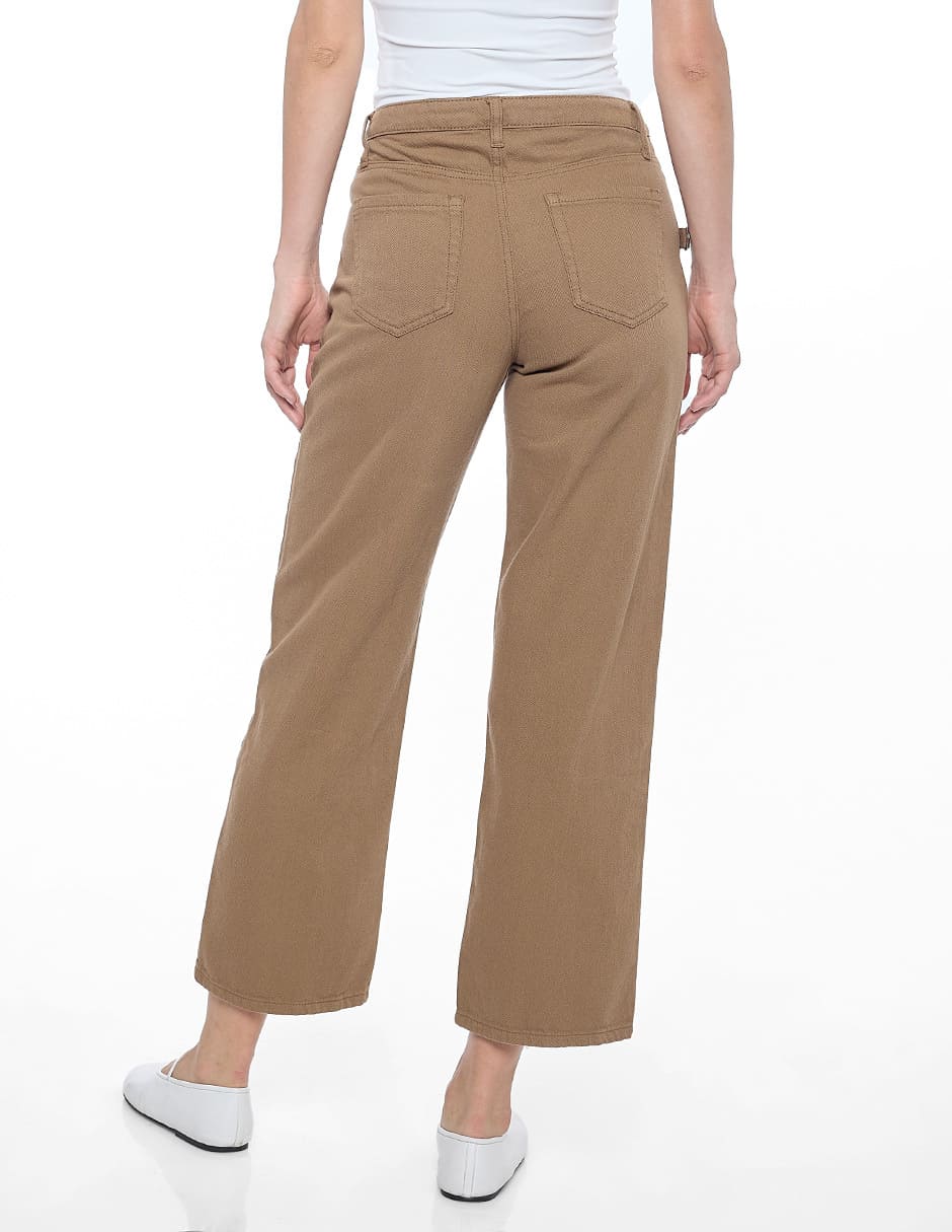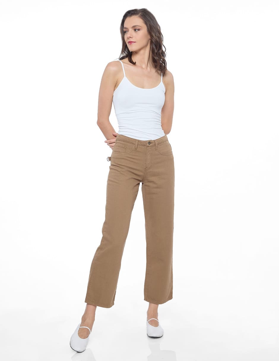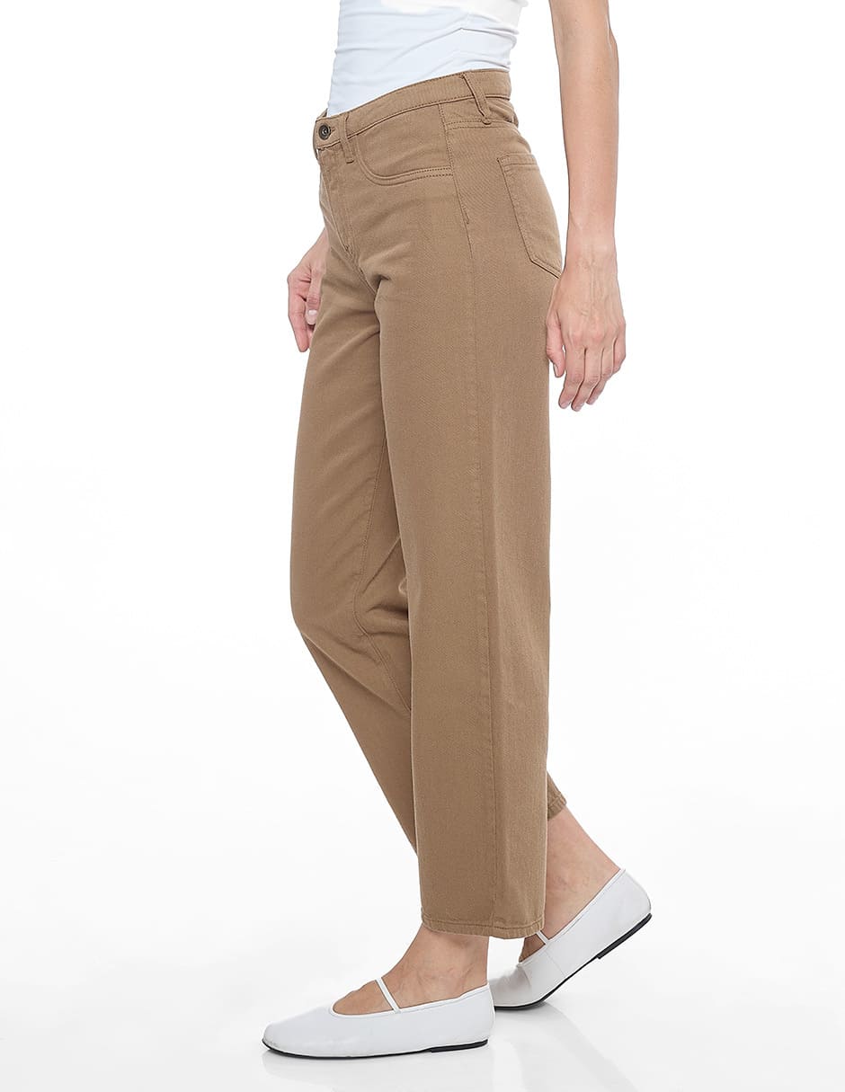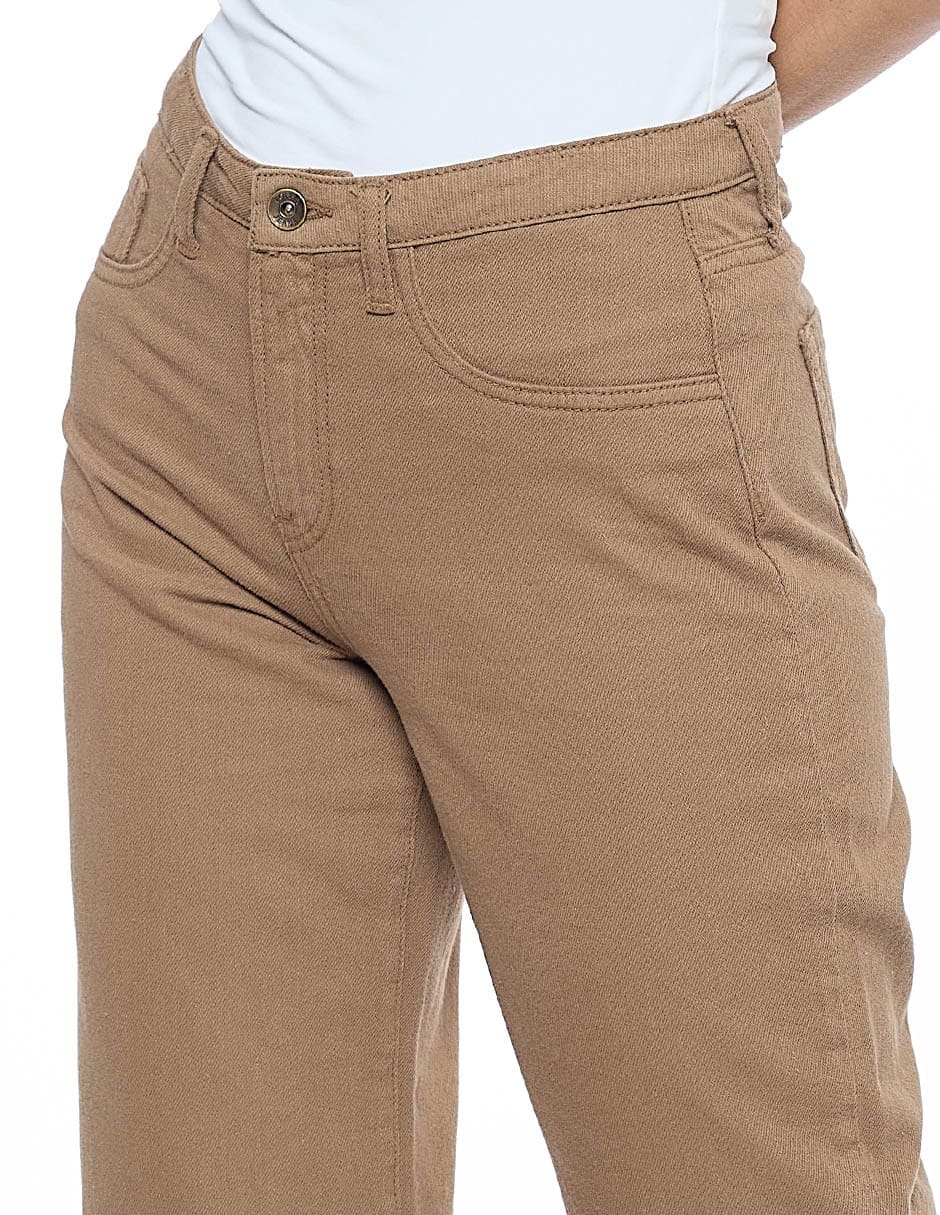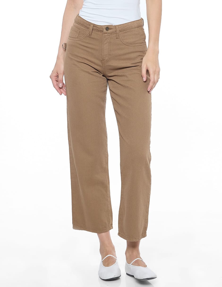 Jeans algodón liso color café, corte vaquero, amplio y recto