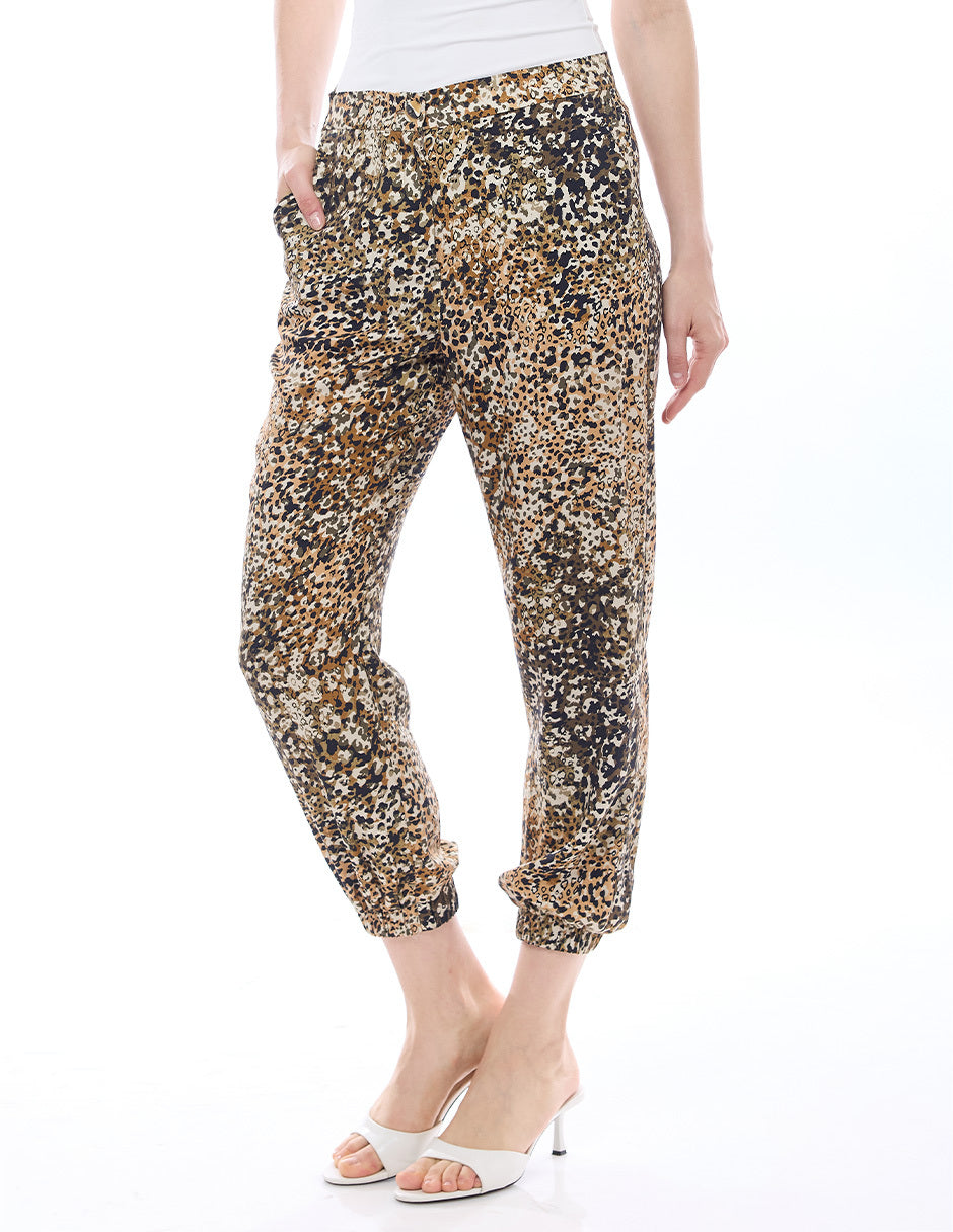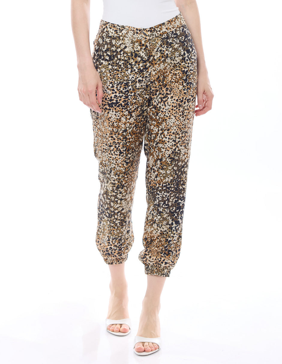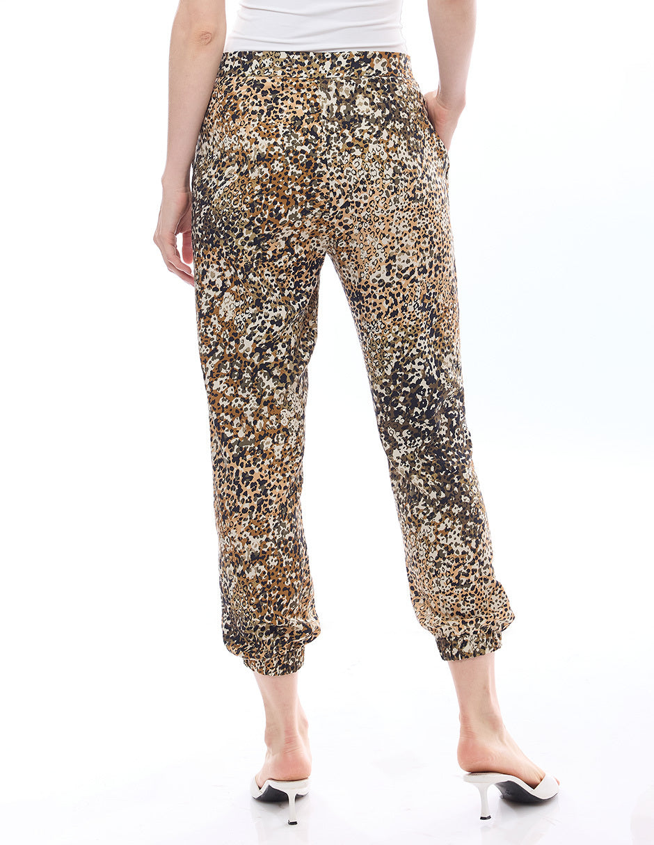 Pantalón estilo jogger estampado animal print color verde, cierre al frente, y bolsas en costados