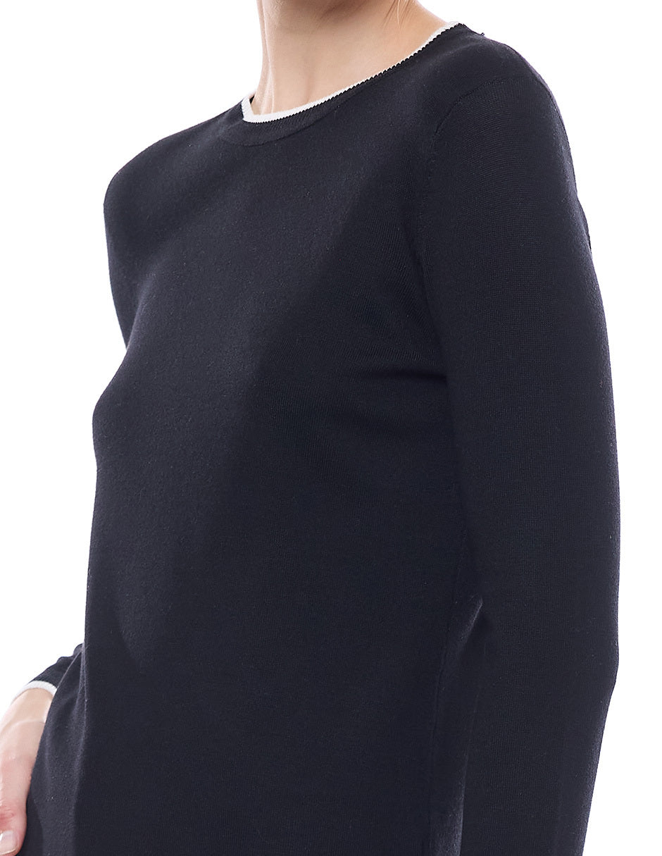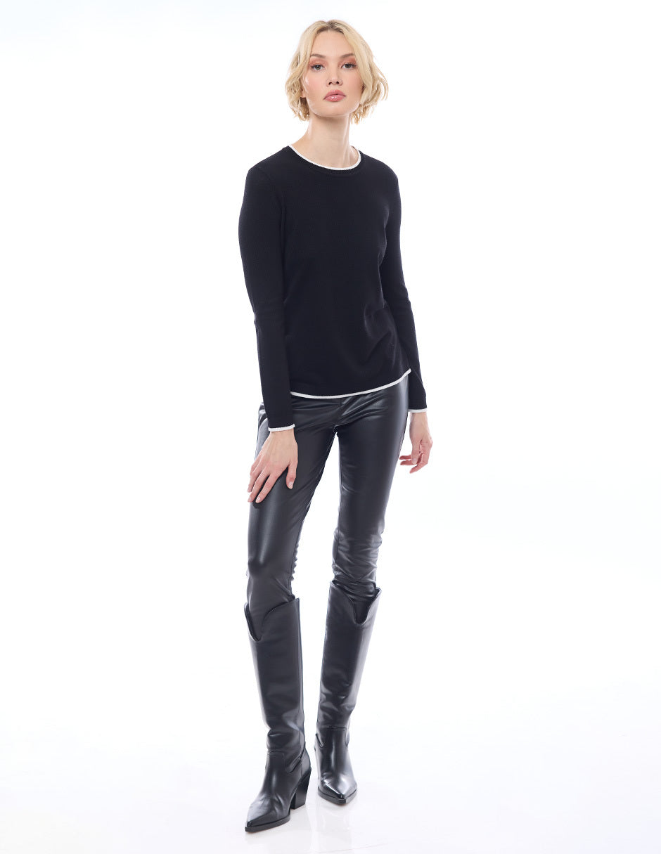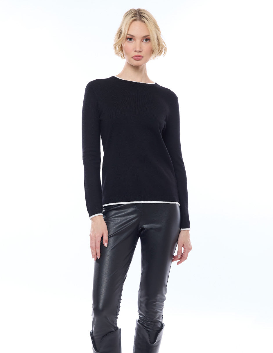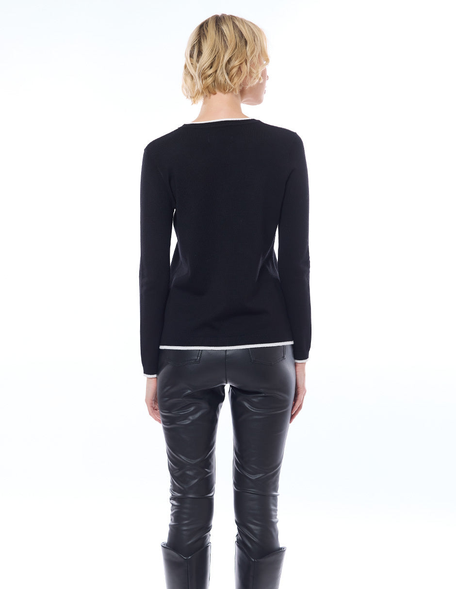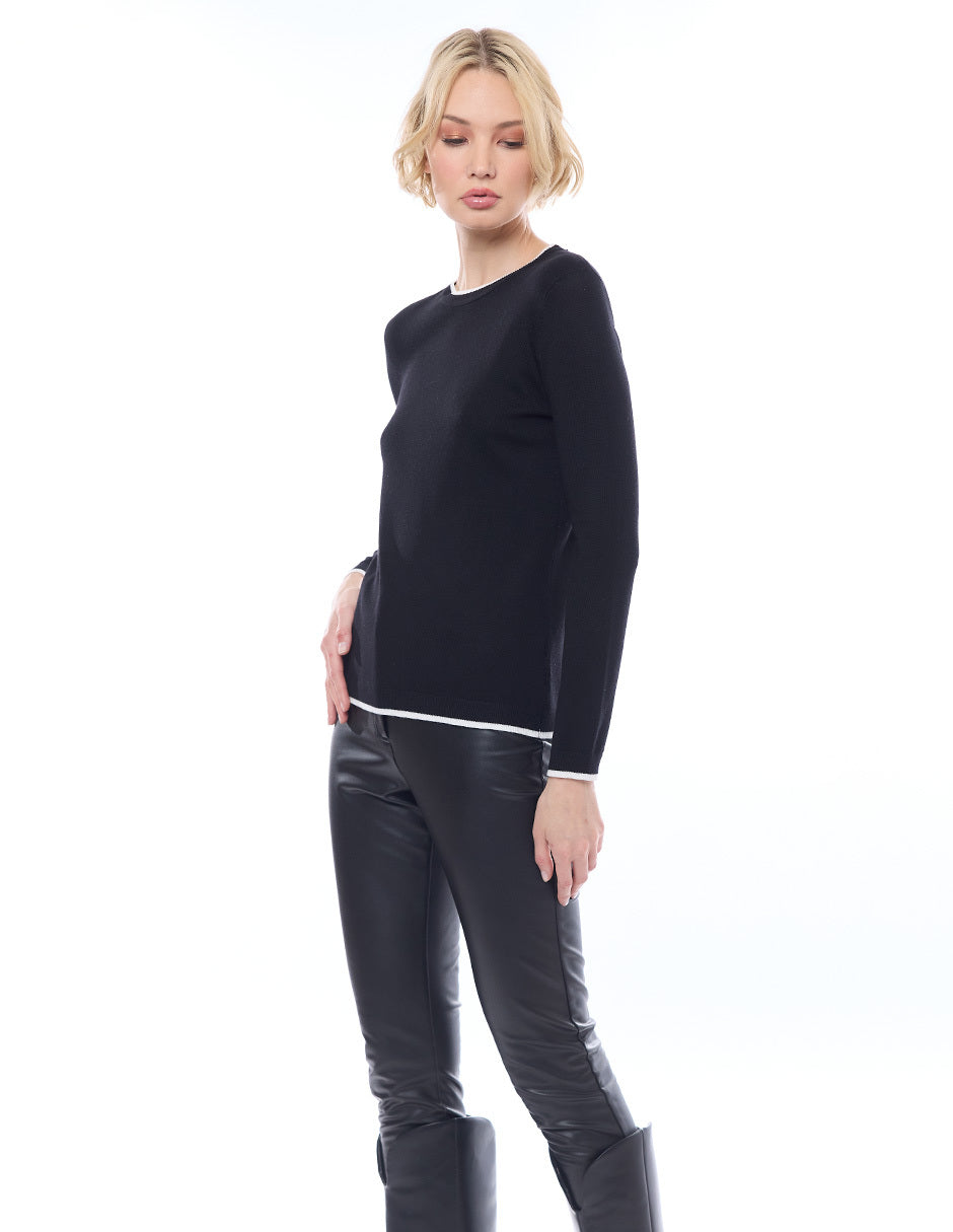 Suéter punto liso con filos en combinación, escote redondo, y manga larga