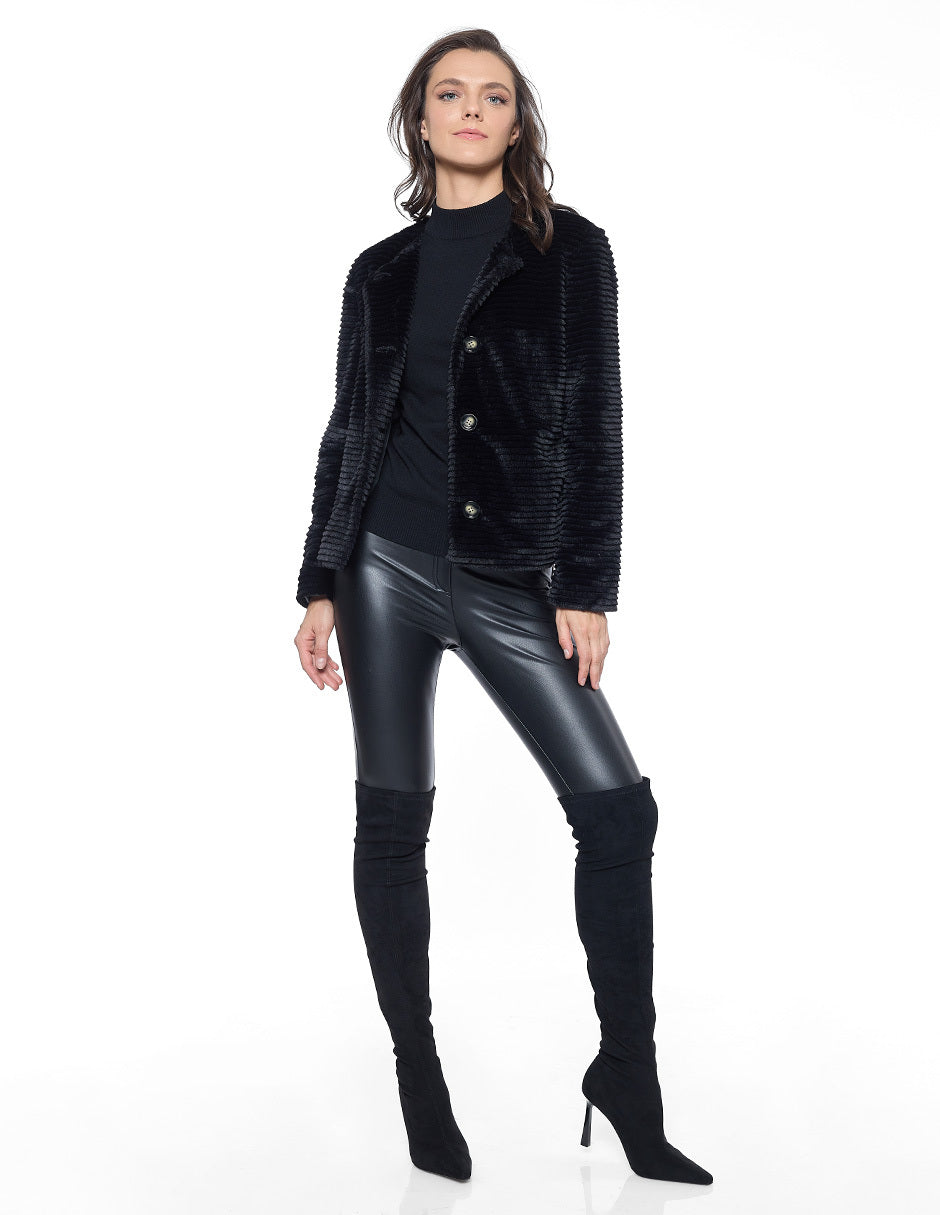 Abrigo Milnk Negro Cuello Redondo Esenciales